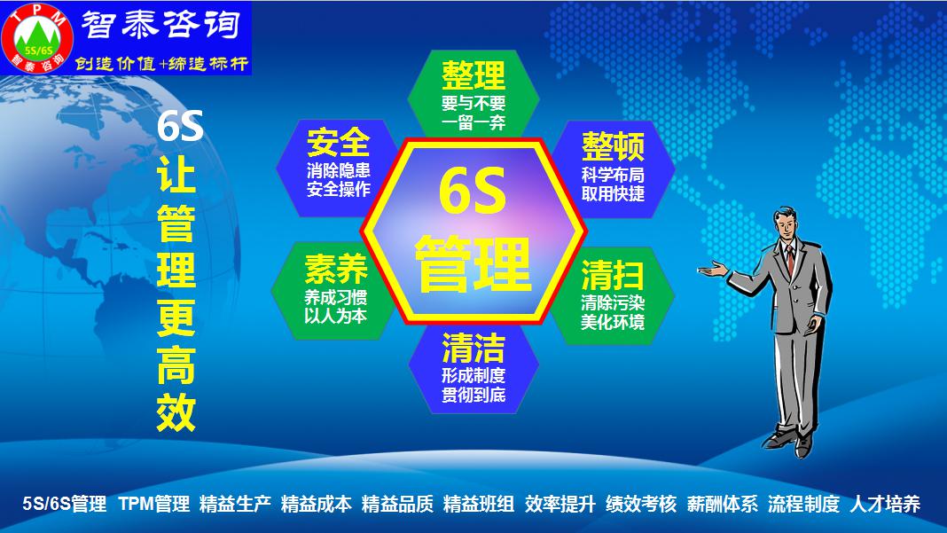 智泰咨詢公司給企業(yè)提供專業(yè)的5S管理,6S管理,TPM管理落地輔導與培訓服務(wù);給企業(yè)提供免費上門調(diào)研服務(wù)和5S,6S管理,TPM管理定制化落地輔導方案。
