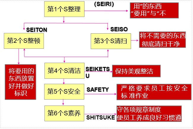 現(xiàn)代的6S管理起源于日本,通過規(guī)范現(xiàn)場、現(xiàn)物,營造一目了然的工作環(huán)境,培養(yǎng)員工良好的工作習(xí)慣,其最終目的是提升人的品質(zhì):革除馬虎之心,養(yǎng)成凡事認真的習(xí)慣(認認真真地對待工作中的每一件“小事”、每一個細節(jié)。),養(yǎng)成遵守規(guī)定的習(xí)慣,養(yǎng)成自覺維護賣場環(huán)境整潔明了的良好習(xí)慣,養(yǎng)成文明禮貌的習(xí)慣。