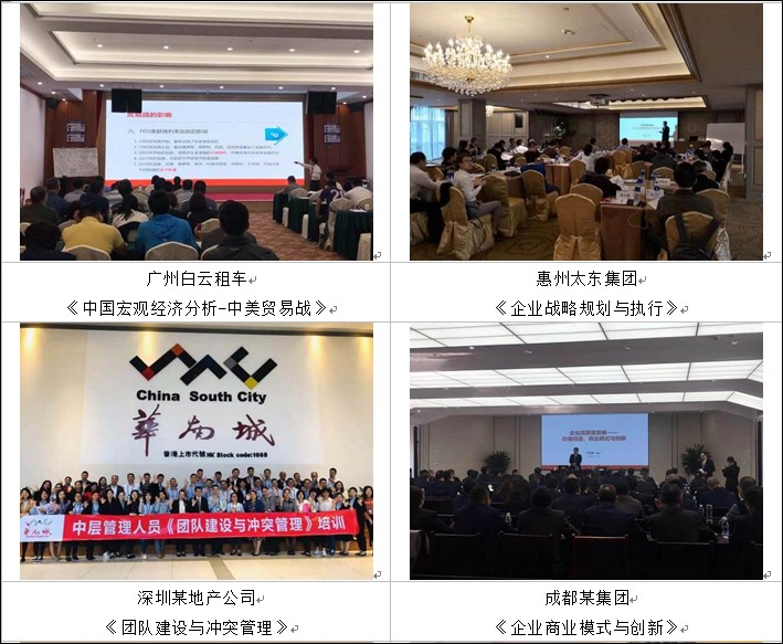 ● 曾受邀中鐵隧道局集團(tuán)有限公司進(jìn)行課程分享,主講《中國(guó)宏觀經(jīng)濟(jì)分析》、《危機(jī)公關(guān)》、《領(lǐng)導(dǎo)者的情商領(lǐng)導(dǎo)力修煉》,《團(tuán)隊(duì)建設(shè)執(zhí)行力》,返聘5期