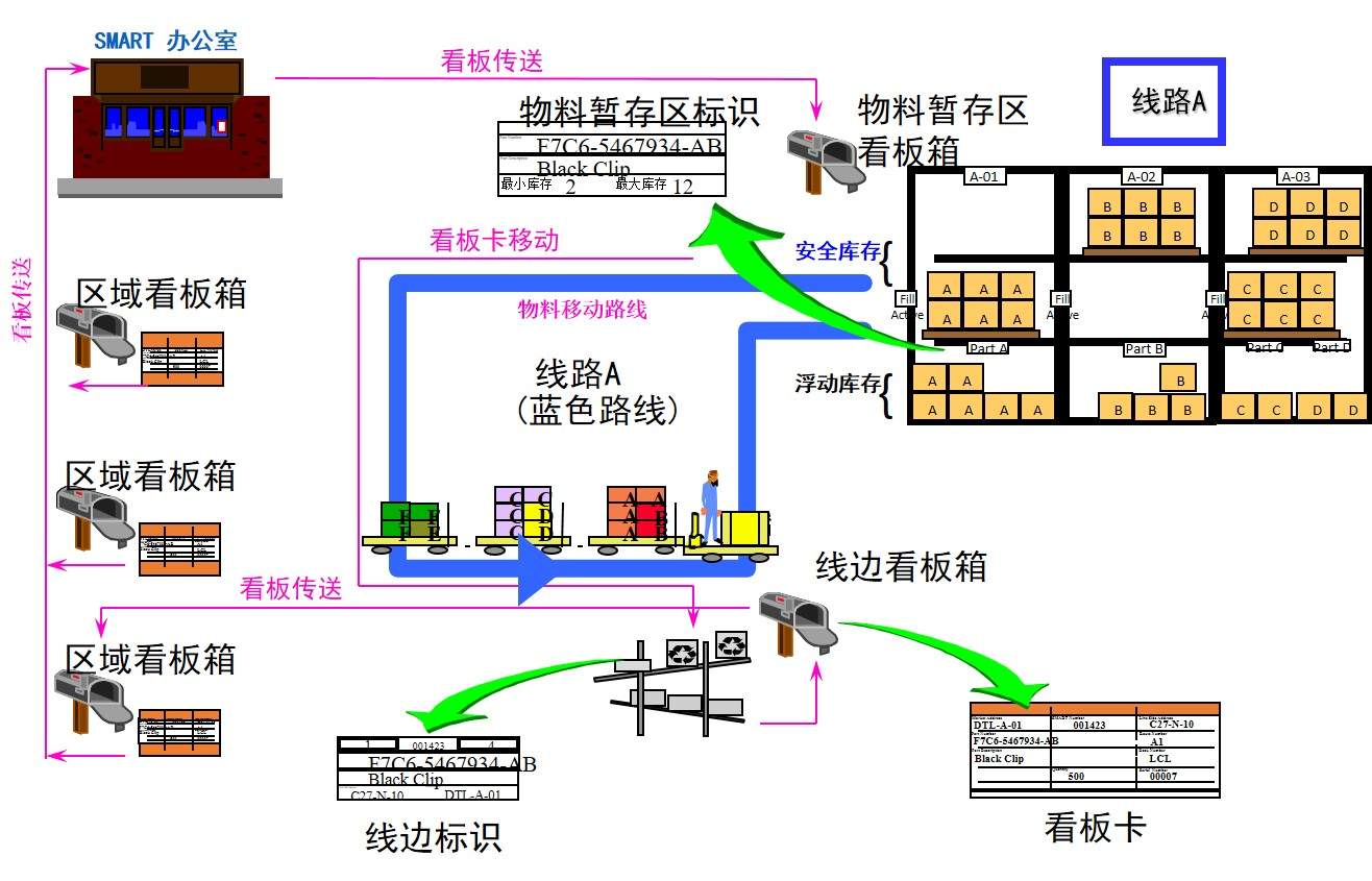 5.將在制品看板拿回生產(chǎn)線的生產(chǎn)看板箱。