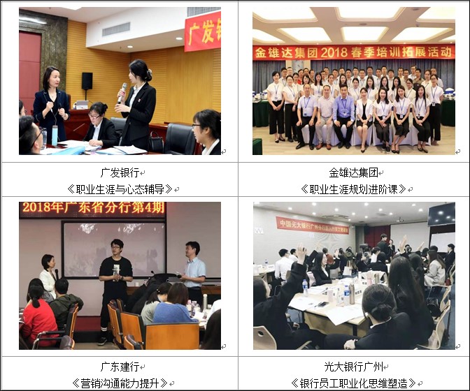 羅姝老師作為項(xiàng)目顧問先后為移動(dòng)、電力、銀行提供過人才培養(yǎng)體系搭建、課程設(shè)計(jì)與開發(fā)、服務(wù)營(yíng)銷咨詢;2015——2019年間,作為專職老師主要進(jìn)行銀行業(yè)的培訓(xùn)及咨詢工作,合作客戶