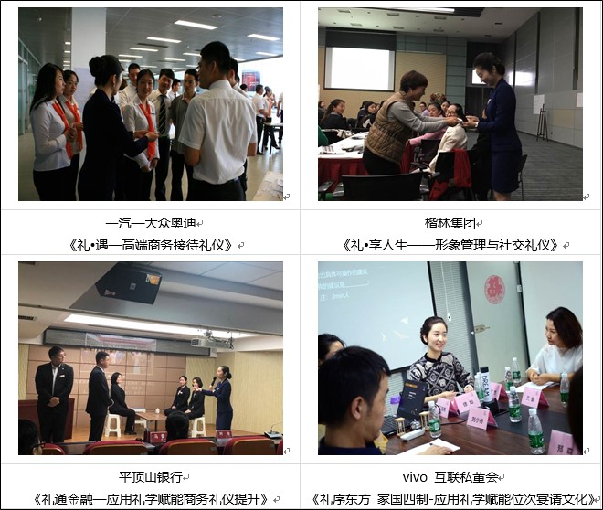→授課累計(jì)近千場(chǎng),給近10萬名企業(yè)員工講授《禮贏商運(yùn)》、《禮譽(yù)人生》、《禮贏職場(chǎng)》等應(yīng)用禮學(xué)系列課程,深受學(xué)員喜愛。