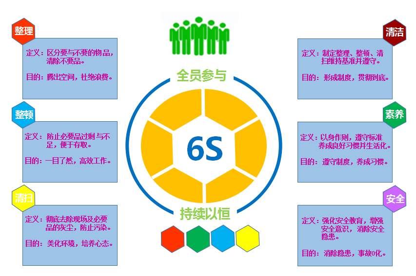 5S咨詢公司中對于5S管理的解釋是最早起源于日本,指的是在生產(chǎn)現(xiàn)場中對人員、機(jī)器、材料、方法、環(huán)境等生產(chǎn)要素進(jìn)行高效管理,形成一套企業(yè)現(xiàn)場管理的體系,促進(jìn)企業(yè)的發(fā)展。1955年,日本5S咨詢公司的宣傳口號(hào)為“安全始于整理整頓,終于整理整頓”,當(dāng)時(shí)只推行了前2S,其目的僅為了確保作業(yè)空間和安全,后因生產(chǎn)控制和質(zhì)量控制的需要而逐步提出后續(xù)的3S,即“清掃”、“清潔”、“素養(yǎng)”,從而使其應(yīng)用空間及適用范圍進(jìn)一步拓展,增加“安全”、“節(jié)約”或其它項(xiàng)目成為6S或7S管理......等。
