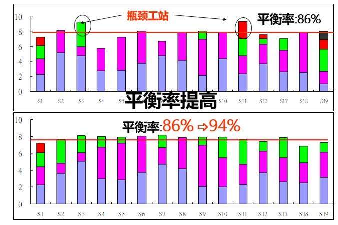 平衡率是衡量流程中各工站節(jié)拍符合度的一個綜合比值
