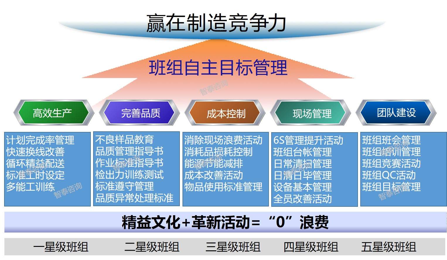以班組自主管理為目標(biāo),為企業(yè)培養(yǎng)優(yōu)秀班組團(tuán)隊(duì)。通過(guò)質(zhì)量、品質(zhì)、成本等先進(jìn)管理方法,提升企業(yè)競(jìng)爭(zhēng)力!