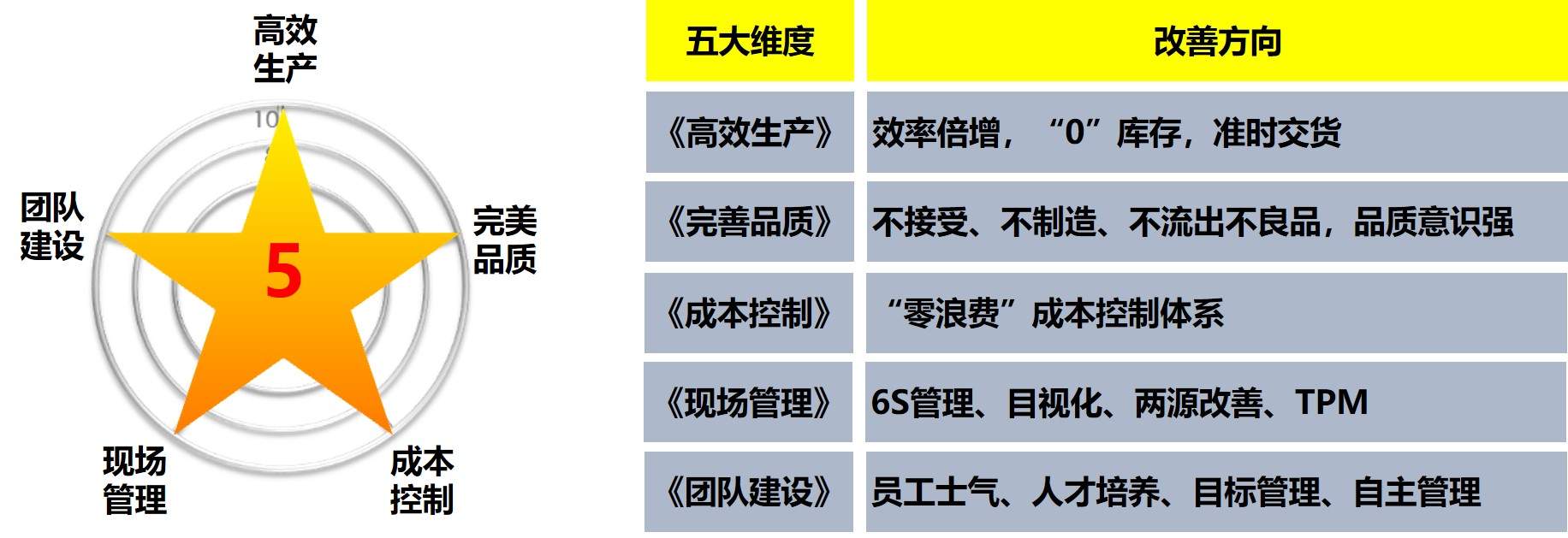 生產(chǎn)效率提升50%以上;產(chǎn)品質(zhì)量提升度30%以上;生產(chǎn)經(jīng)營(yíng)成本下降10%以上;設(shè)備故障率下降70%以上---確保成為行業(yè)標(biāo)桿和最高競(jìng)爭(zhēng)力企業(yè)。