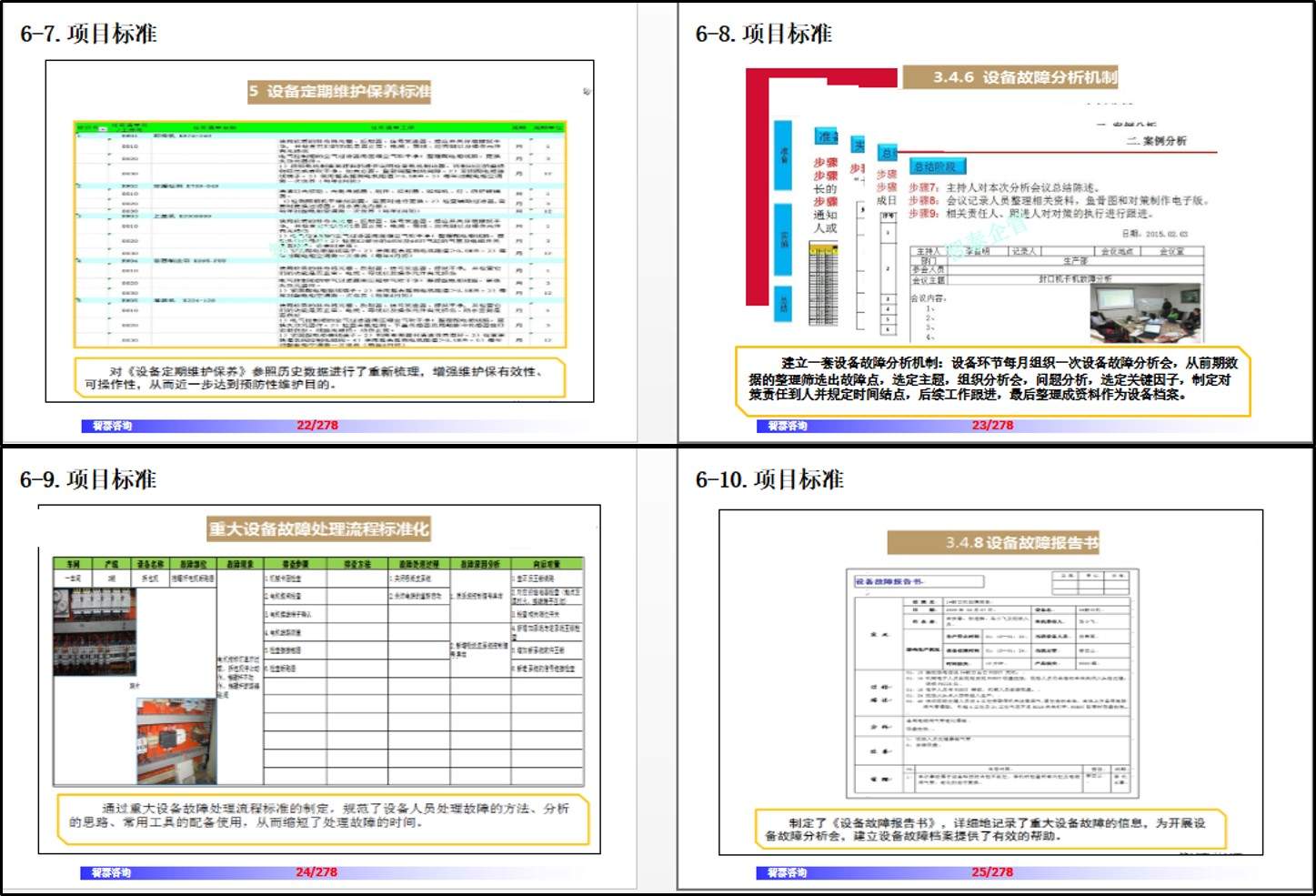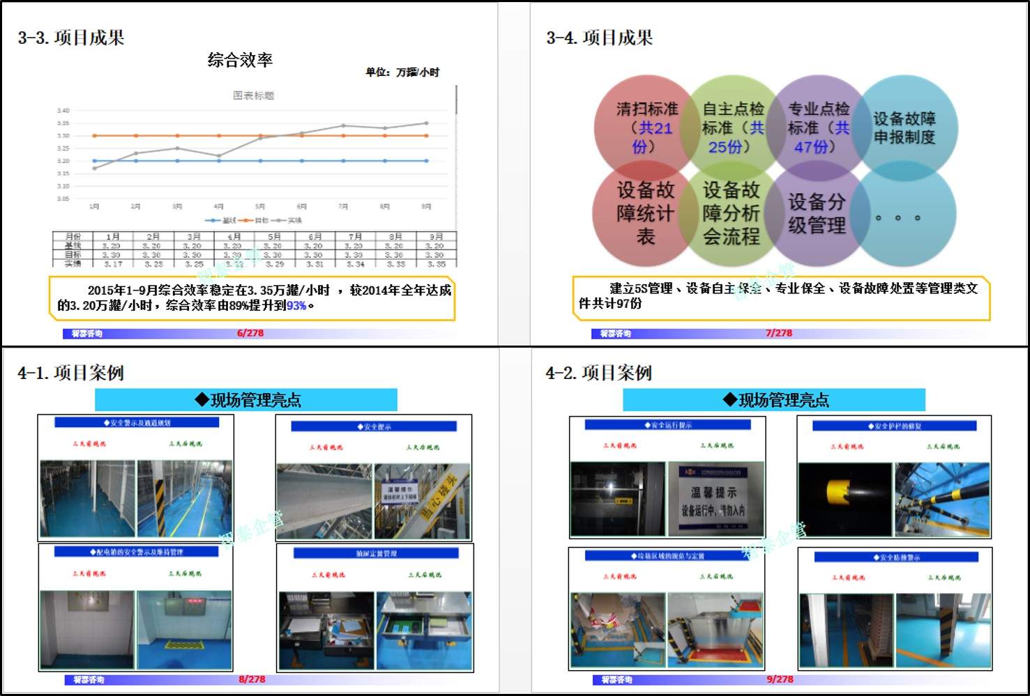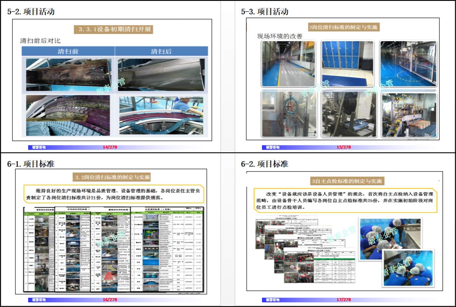 智泰咨詢下屬的TPM咨詢公司為企業(yè)推進的TPM管理活動中,為企業(yè)設(shè)備故障率下降推進了大量的制度及標準,通過全員消除設(shè)備的缺陷并改善及復(fù)原,并對設(shè)備進行部分改良,促進設(shè)備長期穩(wěn)定運